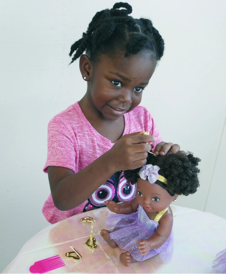 Keyara is the little baby sister of Kenya! Baby Keyara™ is the most adorable baby around! Look at her precious puffs of natural curls! She is loved so much, that the Baby Keyara™ line has expanded to become Keyara’s™ Nursery! Style and play with her hair and feed her a baby bottle! Perfect for little girls to nurture and love her!