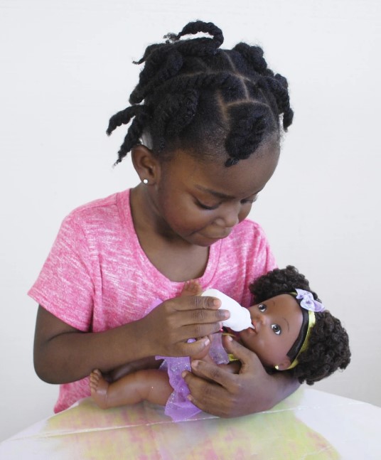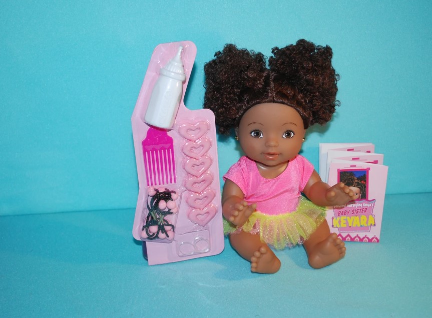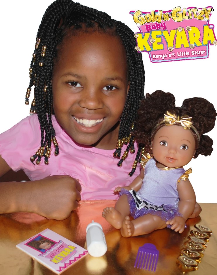 Keyara is the little baby sister of Kenya! Baby Keyara™ is the most adorable baby around! Look at her precious puffs of natural curls! She is loved so much, that the Baby Keyara™ line has expanded to become Keyara’s™ Nursery! Style and play with her hair and feed her a baby bottle! Perfect for little girls to nurture and love her!