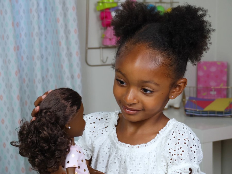 Kenya comes in three shades which represent the beautiful variety of African American skin tones. Join Kenya, her baby sister Keyara, cousins and her wonderful friends too! All representing the African American, Hispanic/Latino and Caucasian communities.